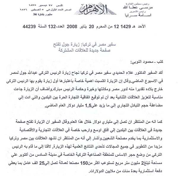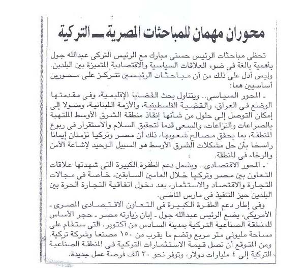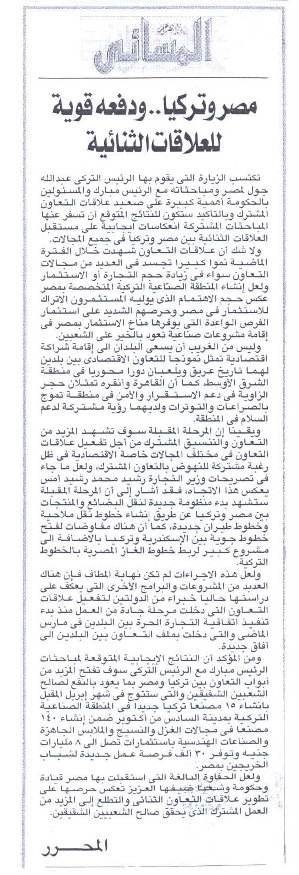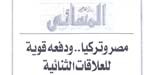 for Egyptian-Turkish Relations In an editorial entitled (A boost for